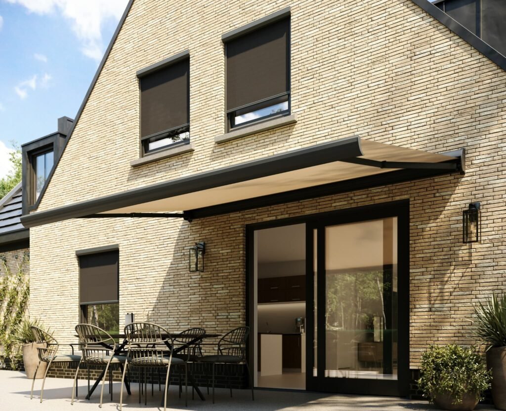 Bij Elektrisch zonnescherm.be geloven we dat een zonnescherm meer is dan alleen functionele zonwering; het is een integraal onderdeel van de architectuur en uitstraling van uw woning. Daarom bieden wij een perfect design voor iedere woning, ongeacht de stijl, leeftijd of ligging. Ons assortiment omvat diverse modellen, van strakke en minimalistische cassettezonneschermen tot elegante knikarmschermen, die elk een eigen karakter toevoegen aan uw gevel. Door te kiezen uit onze uitgebreide keuze betreft doekkleuren en de mogelijkheid om de metalen onderdelen in verschillende RAL-kleuren te laten uitvoeren, kunt u het zonnescherm naadloos laten aansluiten bij uw kozijnen, deuren of andere gevelelementen, voor een harmonieus en weldoordacht geheel.